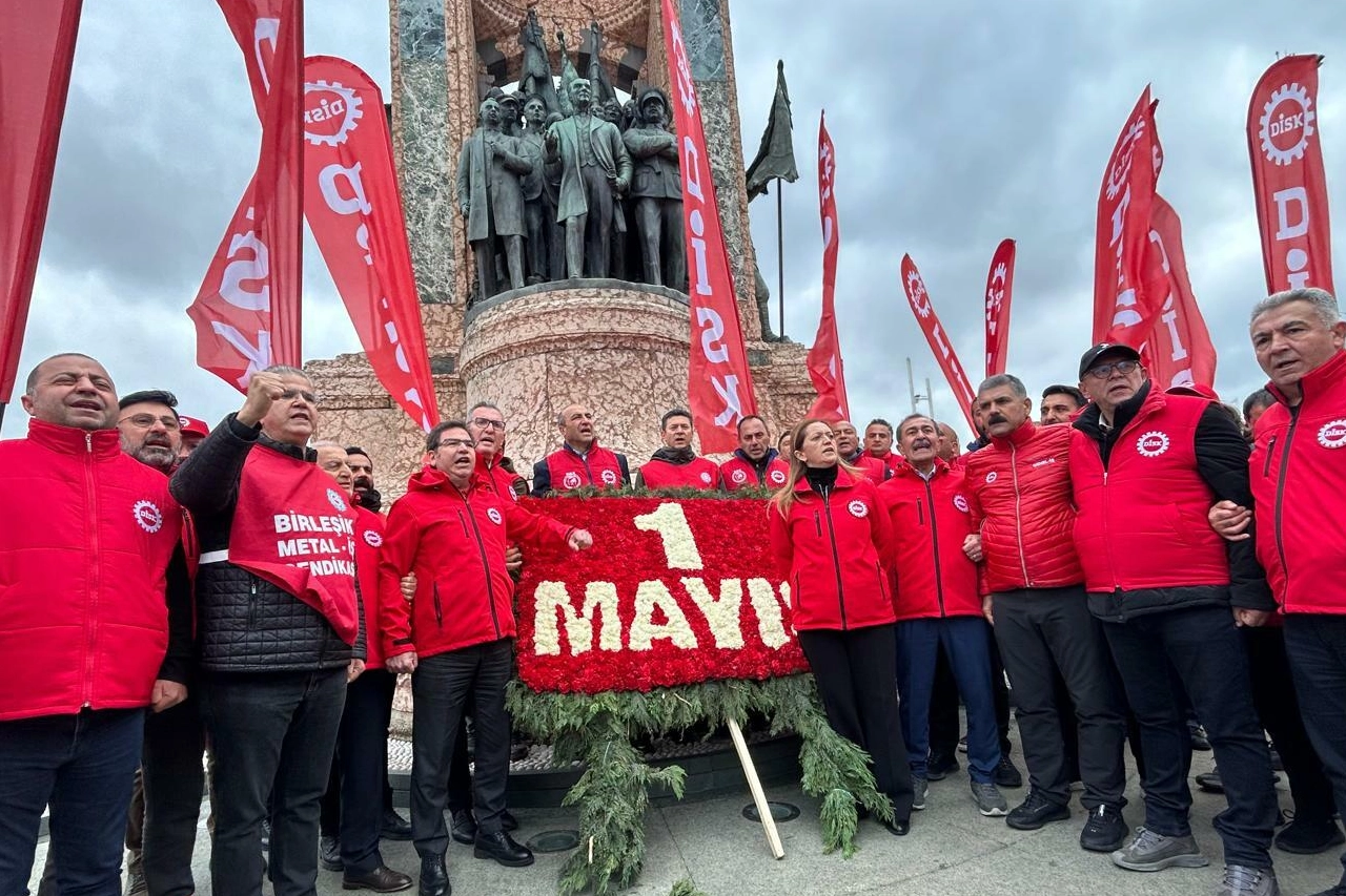 DİSK, 1 Mayıs'ta yaşamını yitirenleri anmak üzere Taksim 1 Mayıs Meydanı'na geldi.