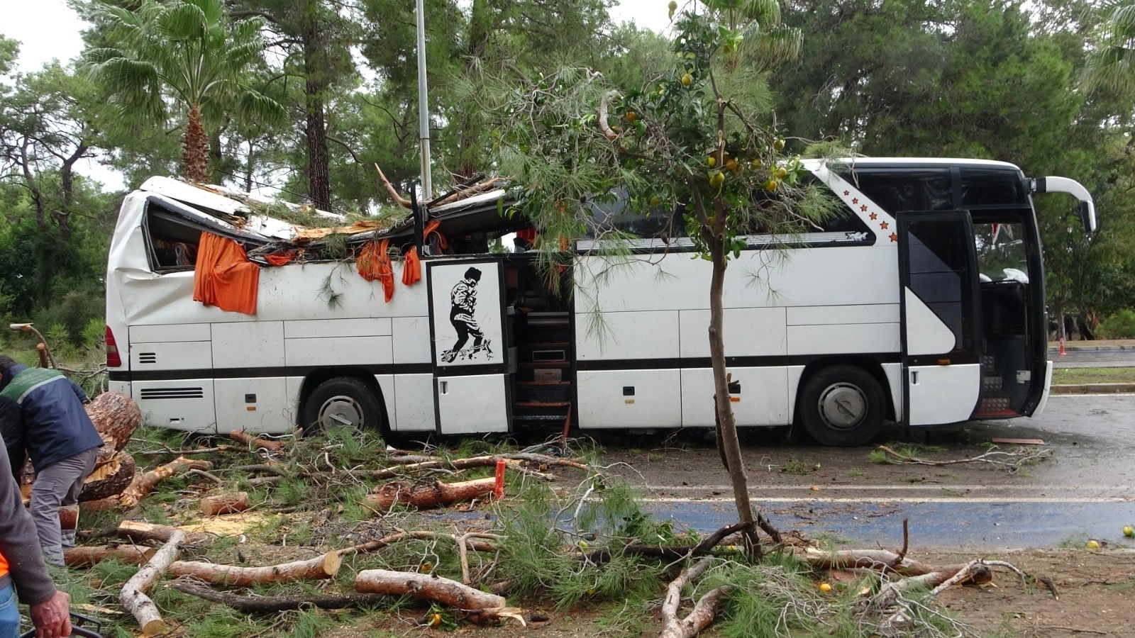 Uğultu ve toz bulutu geçtiSabah saat 07.30 sıralarında Manavgat’tan aldığı otel çalışanlarını Titreyengöl’de bulunan otele götürdüğünü belirten servis otobüsü sürücüsü Soner Sümer, “Titreyengöl Caddesi'nde 150 metre gittiğimde önüme bir ağaç düştü ve yolu kapattı. Aracı durdurup ineceğim sırada camın önünden büyük bir uğultuyla toz bulutu ve ağaç dalları geçti. Tam bu sırada büyük bir gürültü ve ağaç otobüsün üzerine devrildi. İçeridekiler büyük panik yaşadı. Yaralanan 6 arkadaşımız hastaneye kaldırıldı. 4 tanesi ayakta tedavi görerek taburcu edilirken, 2 arkadaşımız ameliyata alındı” dedi.