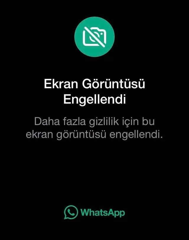 Artık ekran görüntüsü...WhatsApp, bir defa görüntüle seçeneğiyle paylaşılan fotoğraflarda ekran görüntüsü almayı engellemişe benziyor. WhatsApp'ın ekran görüntüsü engelleme özelliği sayesinde, kullanıcılar bir kez görüntülenebilen fotoğraf ve videolarda ekran görüntüsü alamayacak. Sosyal medyada bolca paylaşılan aşağıdaki fotoğrafta da görebileceğiniz gibi, bir kez görüntülenebilen fotoğraflar ve videolardan ekran görüntüsü ve ekran kaydı almak artık mümkün olmayacak. Almaya çalıştığınızda ise karşınıza "Ekran görüntüsü engellendi. Daha fazla gizlilik için bu ekran görüntüsü engellendi." bildirimi çıkacak.