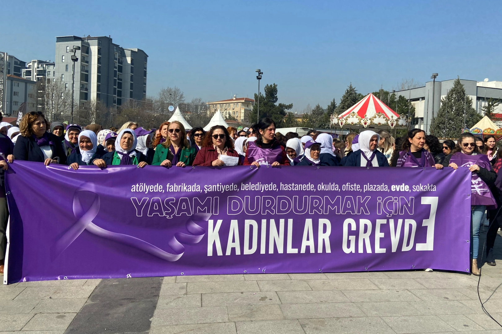 DİSK Kadın Komisyonu 8 Mart öncesi 7 Mart’ta greve çıkacağını duyurmuştu. Bursa’da DİSK üyesi kadınlar Nilüfer Belediyesi Halk Evi önünde bir araya gelerek basın açıklaması gerçekleştirdi.