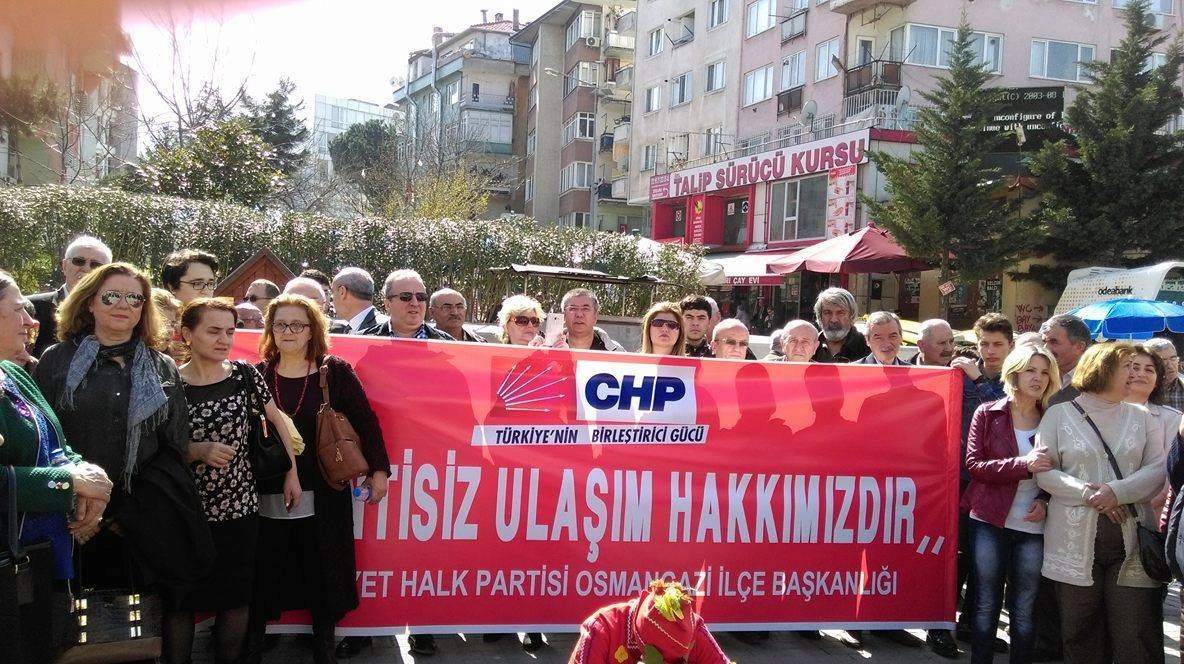 Ulaşım sorunları her geçen gün artan Bursa'da CHP Osmangazi İlçe Başkanlığı, sorunlara dikkat çekmek için dün(1 Mart) Osmangazi Metro İstasyonu önündeydi. Gece ulaşım problemleriyle, zamlarıyla, trafik sıkışıklığıyla ve üstüne üstlük ülkenin en pahalı ulaşımıyla bilinen Bursa'da sokağa çıkan CHP Osmangazi İlçe Başkanlığı ulaşıma dair Büyükşehir'in harekete geçmesini istedi. CHP Osmangazi İlçe Başkanı İsmet Karaca, "3 milyona yaklaşan nüfusuyla Türkiye'nin dördüncü büyük kenti olan Bursamızda gece saat 00.30'dan sonra, toplu ulaşım hizmeti kesilmektedir. Taksi parası olmayan yurttaşlarımızın, sabah toplu ulaşım başlayana kadar mağdur olmaktadırlar." dedi. Karaca, Burulaş'ın gün boyu kar ettiğini en azından gece de halka hizmet etmesini gerektiğini söyledi.