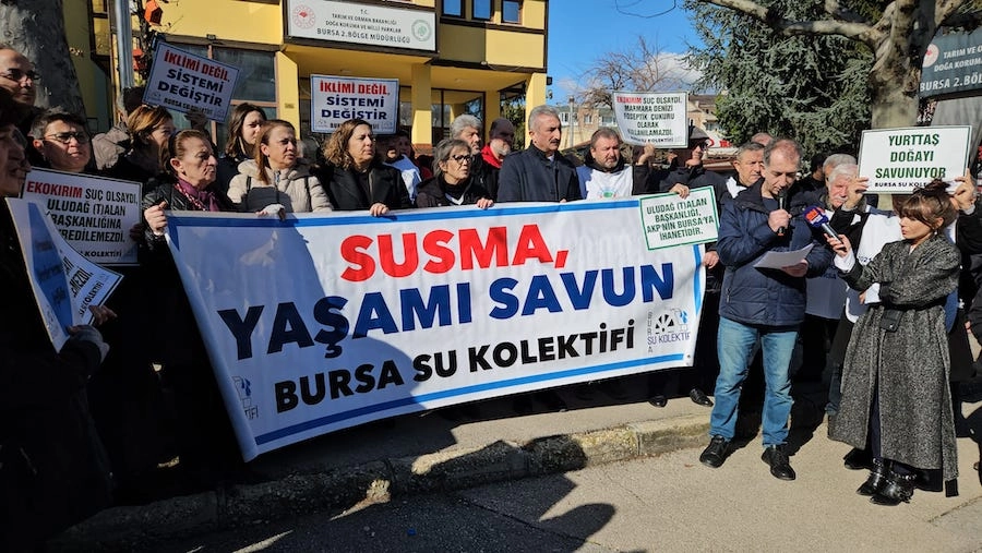 Resmi Gazete’de yayımlanan Cumhurbaşkanı Kararı ile aralarında Bursa’nın da olduğu 13 ildeki 6 milyon metrekarelik orman arazisi orman vasfından çıkarıldı. Bursa Su Kolektifi üyeleri, 2021 yılından bugüne kadar 22 milyon 340 bin metrekarelik orman arazisinin, orman vasfının değiştirilmesine karşı Bursa Doğa Koruma ve Milli Parklar 2. Bölge Müdürlüğü önünde bir araya geldi.