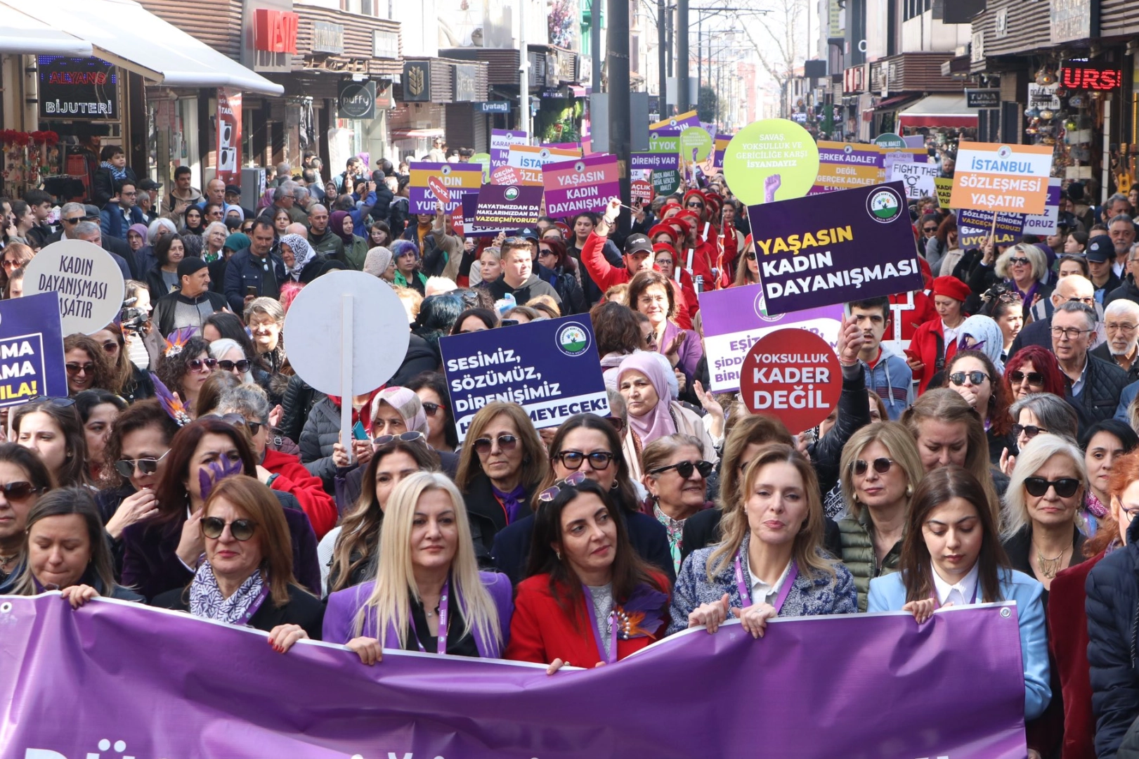 Bursa Büyükşehir Belediyesi, Osmangazi Belediyesi, Nilüfer Belediyesi ve Bursa, Osmangazi ve Nilüfer Kent Konseylerinin Kadın Meclisleri’nin çağrısıyla Cumhuriyet Caddesi’nde buluşan kadınlar buradan Hanlar Bölgesi’ne yürüdü. Barış Kadın Bandosu’nun eşlik ettiği yürüyüşte kadınlar özgürlük şarkıları ve sloganlarıyla kadınlar için daha adil, eşit ve özgür bir dünya taleplerini haykırdılar.