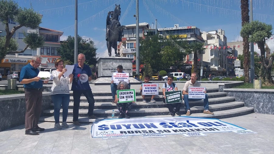 Karacabey'de yapılan açıklamada konuşan Su Kolektifi üyeleri Ferhan Küçük ve Şehnaz Bayraktar, "Birleşmiş Milletler göre 2050 yılında dünya, 10 milyar insana ev sahipliği yapacak. Bu da önümüzdeki 30 yıl içinde dünya nüfusuna 2 milyar insan daha ekleneceği anlamına gelmektedir. Nüfus hızla artıyorsa yapılması gereken tek bir şey vardır. O da doğamızı, tarım alanlarımızı ve derelerimizi gözümüz gibi korumak, kirletilmesini, yok edilmesini engellemek olmalıdır." dedi.