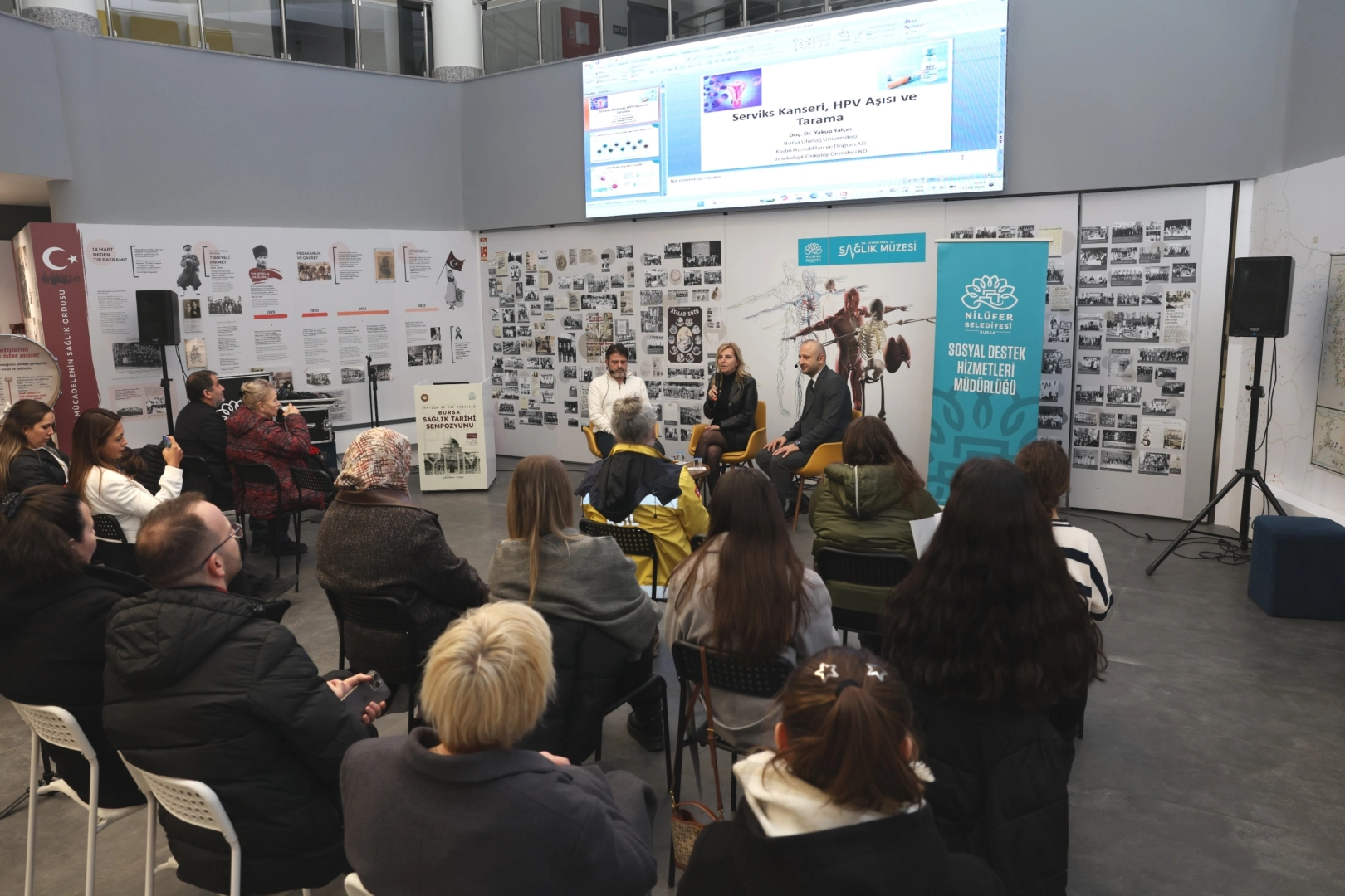 Nilüfer’de Sağlık Buluşmaları kapsamında “Kadın Sağlığında Önlenebilir Bir Kanser: Rahim Ağzı Kanseri, HPV Aşısı ve Taramalar” söyleşisi gerçekleştirildi. Nilüfer Belediyesi Dr. Ceyhun İrgil Sağlık Müzesi’nde moderatörlüğünü Bursa Uludağ Üniversitesi (BUÜ) Aile Hekimliği Ana Bilim Dalı Öğretim Üyesi Prof. Dr. Yeşim Afşar Uncu’nun yaptığı söyleşide, BUÜ Kadın Hastalıkları Jinekolojik Onkoloji Cerrahisi Bilim Dalı öğretim üyeleri Prof. Dr. Kemal Özerkan ve Doç. Dr. Yakup Yalçın konuk oldu.