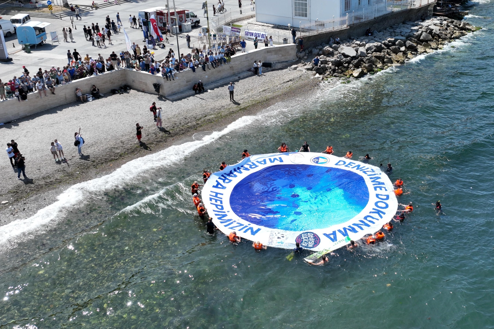 Etkinliğin sonunda katılımcılar, “Doğa yoksa, yaşam yok” diyerek hem kurumlara hem yurttaşlara sorumluluk çağrısında bulundu. Ardından can yeleklerini giyen çevre gönüllüleri, Mudanya Mütareke Meydanı sahilinden denize girdi. Deniz yüzeyine açılan, 12 metre çapındaki “Denizime Dokunma, Marmara Hepimizin” yazılı dev pankart sahildeki yurttaşlardan alkışlarla destek buldu.