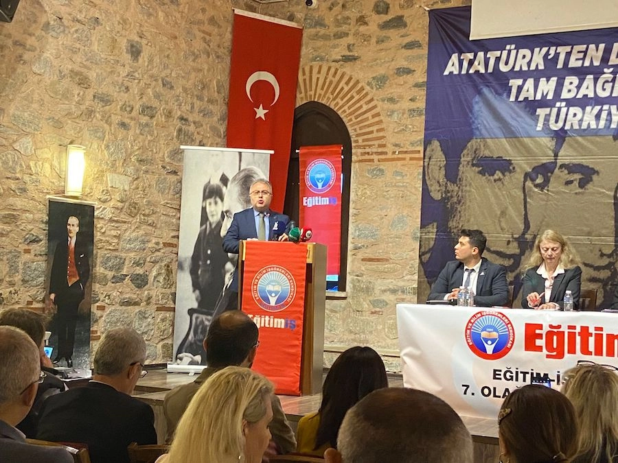 “Cumhuriyetin kazanımlarının nasıl bir savunucusu ve mücadelecisi olan bir sendika şubemiz olduğunu gördük. Ben o emek ve mücadeleden dolayı hepsine çok teşekkür ediyorum.” diyerek Bursa Milletvekili Hasan Öztürk de Genel Kurul’u selamladı. “En büyük mücadelenin aslında cahillikle ve medrese taassubunun bu millet üzerinde oluşturduğu etkiyle olacağını gören bize Başöğretmenlik yapan Gazi Mustafa Kemal'in arkasından yürüyen herkesi kutluyorum.” diyen Öztürk, AKP’nin yapmak istediği 1950’ler ile başlayan karşı devrimin, cumhuriyetin kazanımları ile olan mücadelenin en temelinde yine eğitimin olduğunu söyleyerek, Eğitim – İş’in mücadelesinin sadece bir sendikal mücadele olmadığını, Türkiye’nin aydınlık yüzünün mücadelesi olduğunu belirtti ve seçilecek yeni yönetime başarılar diledi.