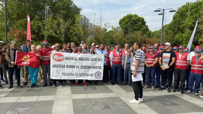 Basın açıklamasında konuşan Tekgıda-İş Sendikası Genel Teşkilatlanma sekreteri Kemal Köse: Bugün bu meydandan sizlerin de huzurunda EKER SÜT işveren yetkililerini bir kez daha uyarıyoruz. Çalışanların Anayasal haklarına saygı gösterin. Sendika üyesi olduğu için işçiyi işten atamazsınız. Bu Türkiye Cumhuriyeti Ceza kanunlarına göre suçtur. Hukuk tanımaz uygulamalardan, insanlık onuruna yakışmayan davranışlardan ve bu suçu işlemekten vazgeçin. Gerek anayasamızın 51. maddesi gerek 6356 sayılı Sendikalar ve Toplu İş Sözleşmesi kanunu gerekse Türkiye'nin de tarafı olduğu Uluslararası Sözleşmelerle güvence altına alınan sendika üyeliği hakkı ile sendikamıza üye olan çalışanlar önce EKER SÜT işverenleri tarafından sendikadan baskıyla istifaya zorlanmakta, istifa etmeyen üyelerimiz ise işten çıkarılmaktadır. En son 5 arkadaşımız bu duruma maruz kalmıştır.