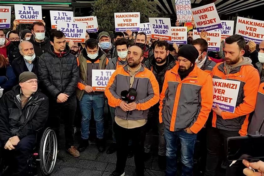 "Dün İstanbul'da Hepsi Burada'nın Genel Merkezi önünde bir araya geldik. Hepsijet emekçileri olarak bize dayattıkları 1 TL'lik zamma karşı kol kola girdik. İstanbul'daki buluşmamızın tüm şubelere, tüm şehirlere, Türkiye'ye cesaret olmasını istiyoruz. Biz yoksak dağıtım yok. Biz yoksak iş yok. Biz yoksak Hepsijet yok. Bunu bilmeliyiz.