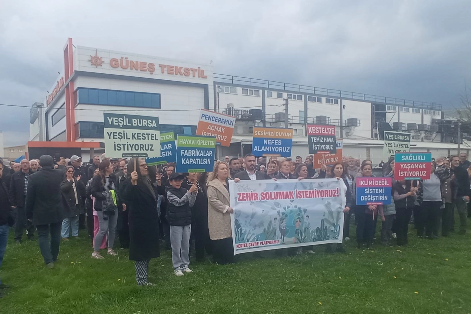 Kestel Çevre Platformu’nun çağrısıyla bir araya gelen Kestelliler Güneş Tekstil önünde yaptıkları basın açıklaması ile, zehir solumak istemiyoruz dedi.