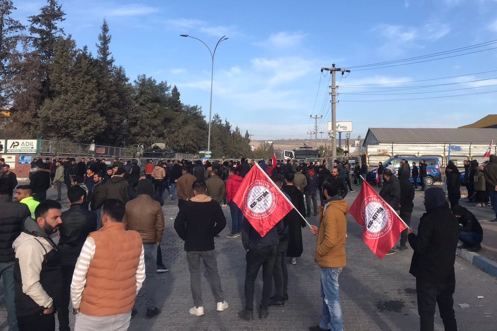 Urfa'da Özak Tekstil işçilerinin sendikal hakları ve insanca çalışma koşulları için başlattıkları direnişte 23. gününde. Bugün fabrika önüne gitmek isteyen işçiler, yine jandarma barikatı ile karşılaştı, Organize Sanayi Bölgesine (OSB) alınmadı. İşçiler, BİRTEK-SEN ile birlikte OSB girişinde bir açıklama gerçekleştirdi.