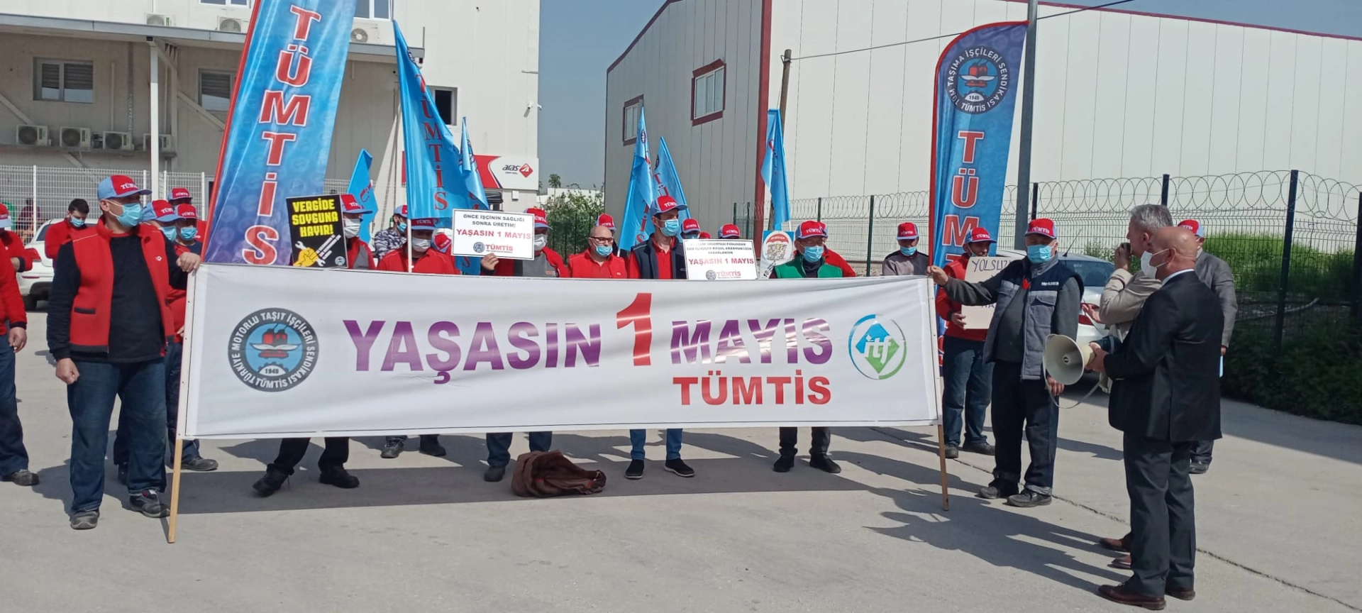 1 Mayıs kutlamalarının yasaklanmasının ardından "tam kapanma" öncesi Türk İş’e bağlı TÜMTİS sendikası iş yerlerinde kutlama gerçekleştirdi.