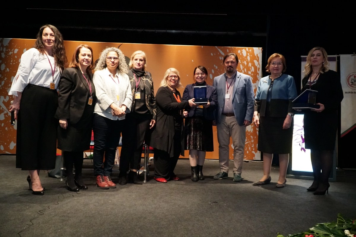 Konuşmaların ardından Bursa Barosu Başkanı Av. Gürkan Altun ve Bursa Barosu Genel Sekreteri Av. Hüsniye Altın Yeşil ve Mor Salkım Kadın Dayanışma Derneği Başkanı Dilek Üzümcüler, panelistlere plaket verdi.