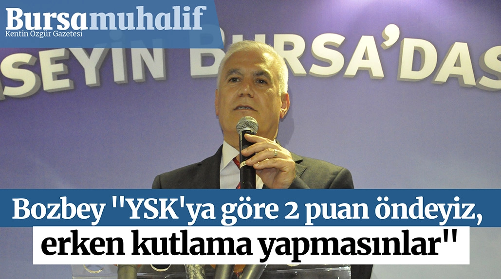 Anadolu Ajansı'nın verilerine göre yüzde 90'ı açılan sandıkları dikkate alarak kendini Bursa Büyükşehir Belediye Başkanı ilan eden AKP'li Alinur Aktaş'a Mustafa Bozbey'den açıklama geldi. Yüksek Seçim Kurulu'nun ıslak imzalı tutanaklarına göre girilen rakamlara göre yüzde 63 oranında girilen oy arasında 2 puan Alinur Aktaş'ın önünde olduklarını söyledi. Erken kutlama yapmanın doğru olmadığını da söyleyen Bozbey, "Biliyoruz ki sonunda Bursa kazanacak" dedi.