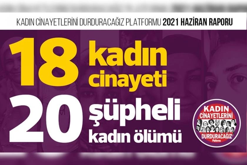 Kadın Cinayetlerini Durduracağız Platformu'nun Haziran ayı raporuna göre 18 kadın katledildi, 20 kadın şüpheli bir şekilde yaşamını yitirdi.