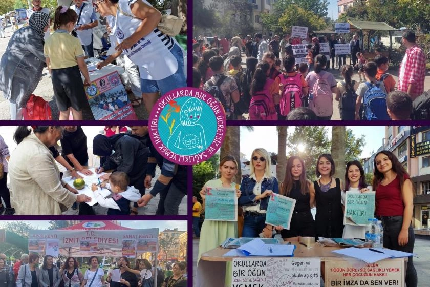 Kocaeli Ekmek ve Gül Kadın Dayanışma Derneği’nin mayıs ayında başlattığı, eylül ayında Ekmek ve Gül’ün çağrısıyla pek çok kadın derneğinin, veli derneğinin, sendikaların, mahalle inisiyatiflerinin, çocuk hak örgütünün katılımıyla farklı illere yayılan “Okullarda 1 Öğün Ücretsiz Yemek” kampanyası için 1 Ekim’de açılacak Meclise çağrı yapıldı.