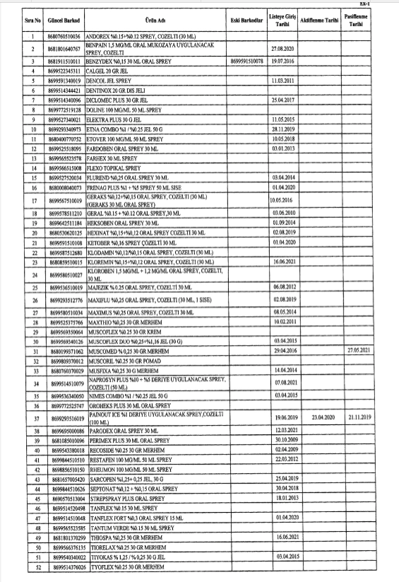 Cumhurbaşkanı Recep Tayyip Erdoğan'ın imzasıyla 15 Ekim 2021'den itibaren 52 ağrı kesici Sosyal Güvenlik Kurumu(SGK) kapsamından çıkarıldı.
