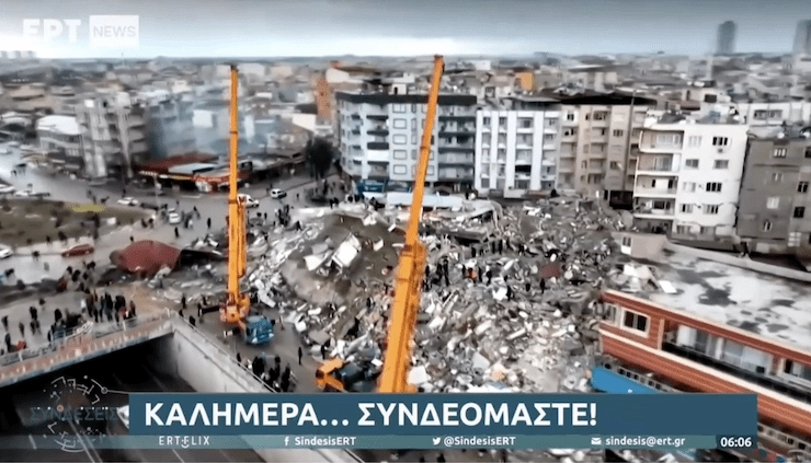 Yunan devlet televizyonu ERT sabah yayınına Türkiye’deki depremle başladı. Yürek burkan görüntülere Karadeniz türküsü ‘Ben seni sevdiğimi de dünyalara bildirdim’ eşlik etti.