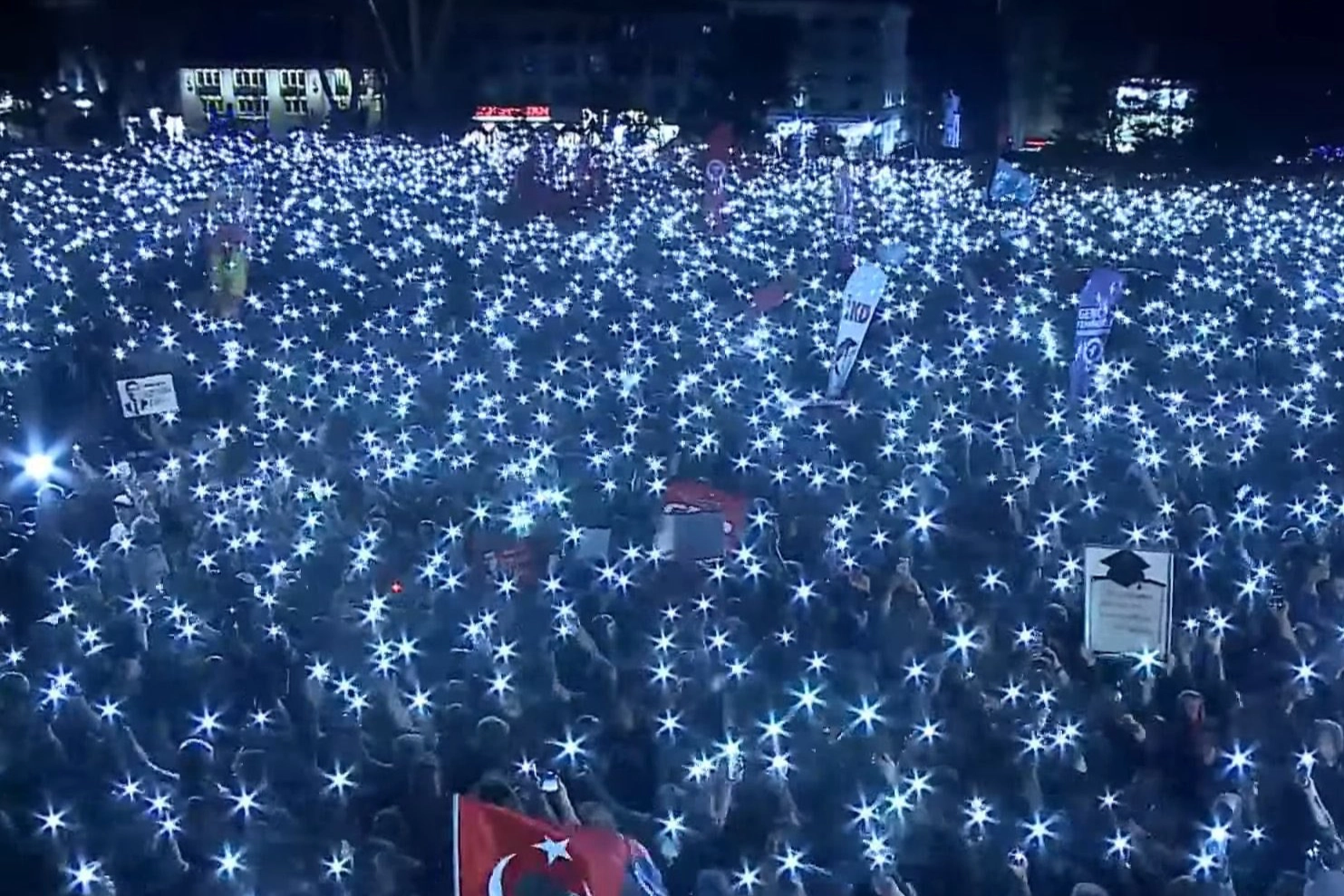 Özel, miting alanının karanlık bırakıldığını belirterek, “Bu coşkuyu gölgelemek isteyenler meydanı aydınlatmamıza bile izin vermedi. Ama biz telefon ışıklarıyla bu karanlığı yırtarız” dedi.
