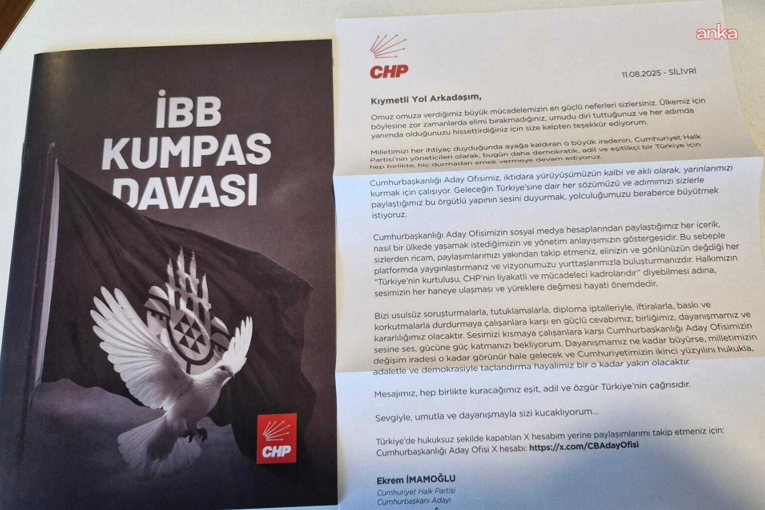 CHP'nin tutuklu cumhurbaşkanı adayı ve İBB Başkanı Ekrem İmamoğlu, TBMM'de CHP milletvekillerinin makamına mektup ve "İBB Kumpas Davası" kitapçığı gönderdi.