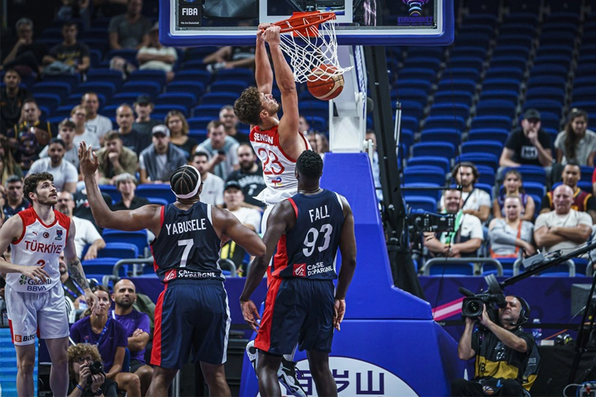 2022 Avrupa Basketbol Şampiyonası Son 16 Turu'nda A Milli Erkek Basketbol Takımı, Arena Berlin'de karşı karşıya geldiği Fransa'ya 87-86'lık skorla yenildi. Türkiye maça Buğrahan Tuncer, Furkan Korkmaz, Cedi Osman, Alperen Şengün ve Sertaç Şanlı beşiyle başladı. Karşılaşmanın ilk yarısını milliler 43-35 geride kapatırken, normal süre ise 77-77 eşitlikle tamamlandı. Uzatma devresi sonunda Fransa, karşılaşmadan 87-86'lık skorla galip ayrıldı.