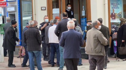 17 günlük kısıtlama öncesi, ellerinde para olmasını isteyen vatandaşlar, bankalara akın etti. Banka önlerinde uzun kuyruklar oluştu.