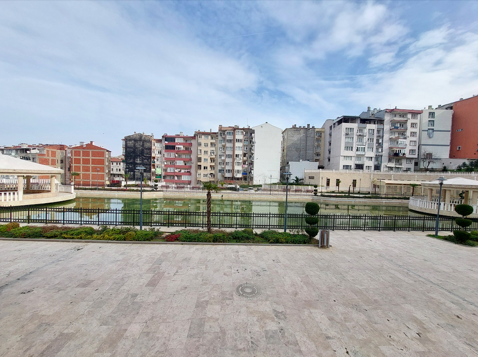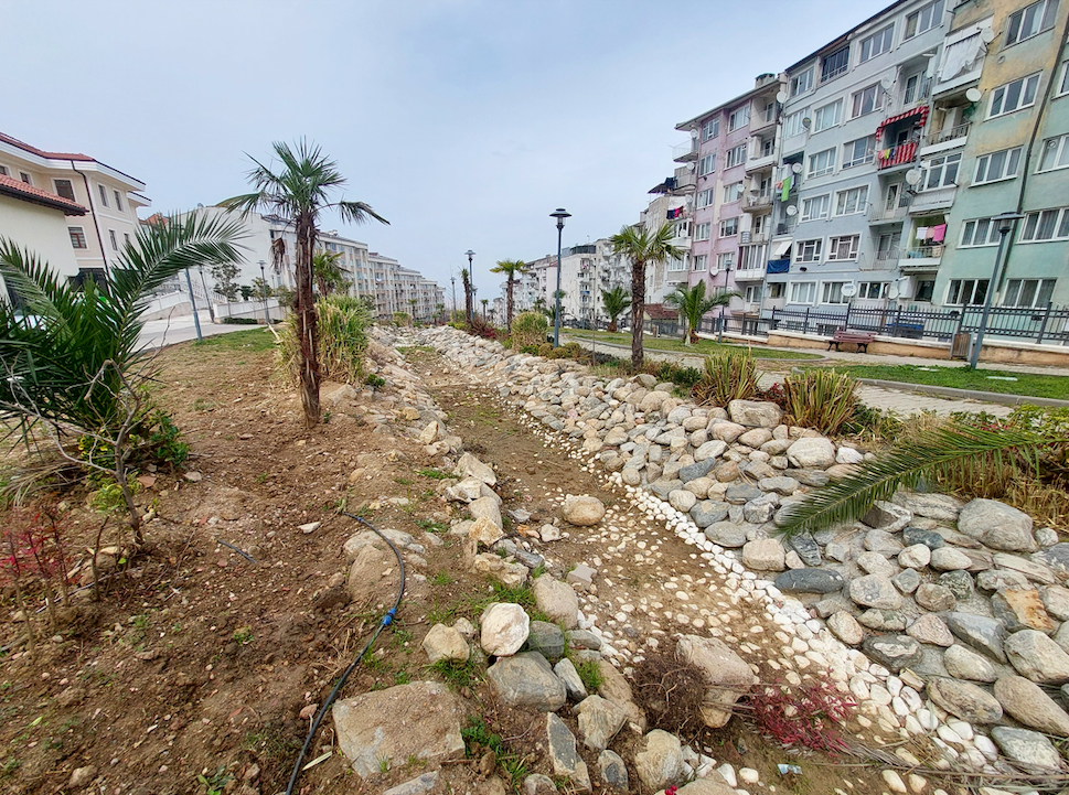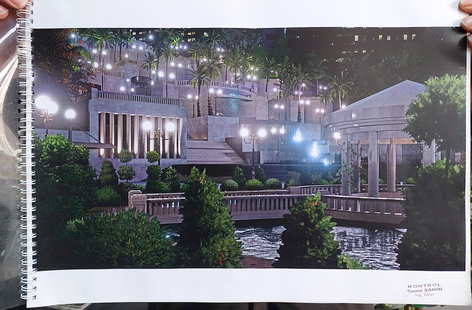 Proje görsellerinde yeşil alanlar, havuzlar ve bir derenin bulunacağı şekilde resmedilen ve ‘Babil’in Asma Bahçeleri’ne benzetilen alan bugünlerde beton yığınına çevrilmiş olarak atıl halde duruyor.