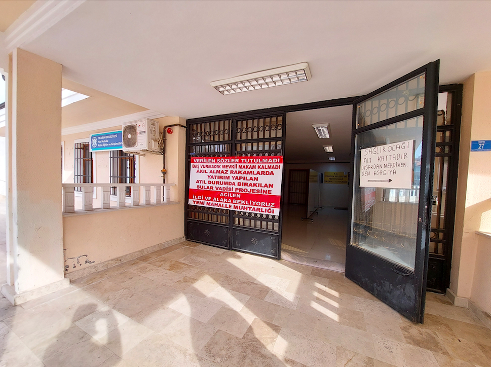 Buldu, söz konusu alanın pazar yerine dönüştürülerek kullanıma uygun hale getirilebileceğini belirterek, Yıldırım Belediyesi’nin duruma kayıtsız kalması nedeniyle muhtarlık binasına pankart astığını da anlattı: