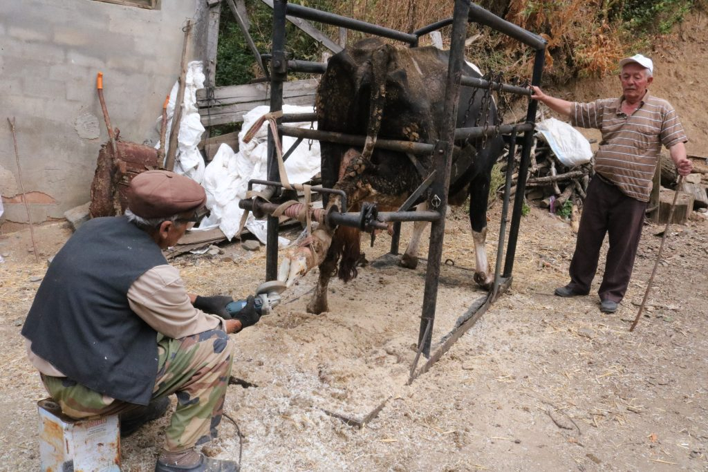 Bursa’nın Keles ilçesi Pınarcık köyünde baba mesleğini devam ettiren 70 yaşındaki Halil Oruç, doğada az gezen ya da gezemeyen besi ve süt ineklerinin tırnaklarını keserek bakım yapıyor.