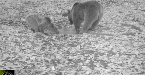 Uludağ Milli Parkı'nda fotokapana yakalanan boz ayılar böyle görüntülendi.
