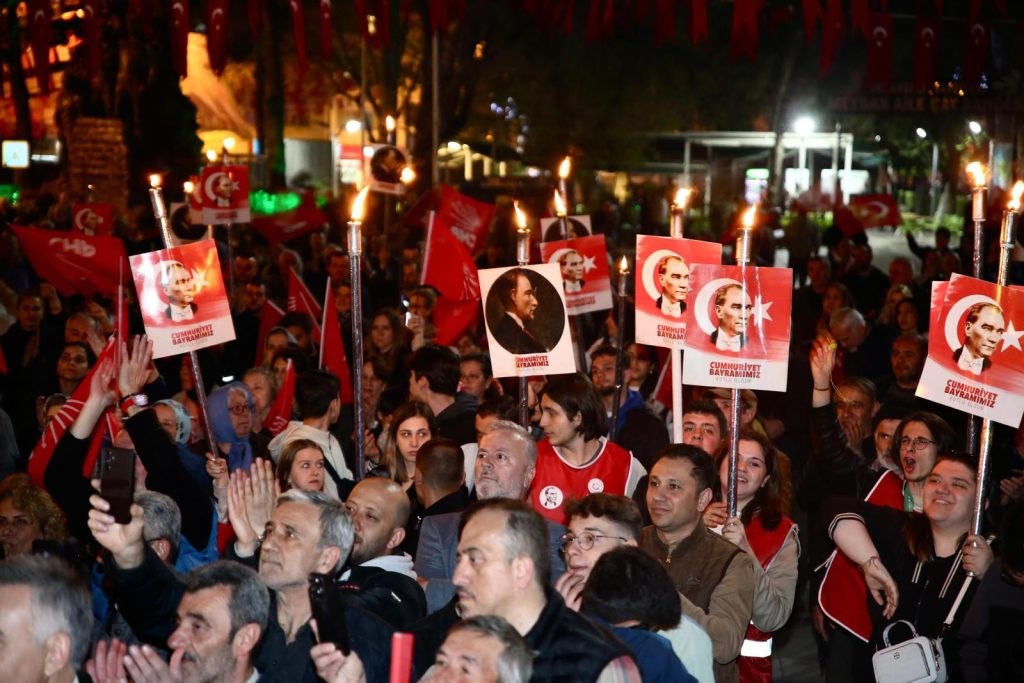 Bursa Büyükşehir Belediye Başkan Adayı Mustafa Bozbey için Orhangazi’de toplanan binlerce vatandaş fener alayı oluşturarak meşaleler ve bayraklarla yürüdü.