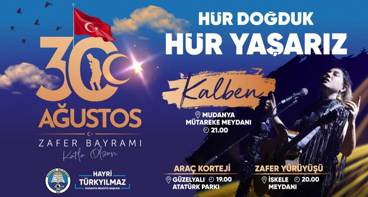 Mudanya Belediyesi bu yıl da 30 Ağustos Zafer Bayramı kapsamında çeşitli etkinliklere imza atacak. Saat 19.00’da Güzelyalı Atatürk Parkı’nda düzenlenecek araç korteji ve saat 20.00’da İskele Meydanı’ndan Mütareke Meydanı’na düzenlenecek kortej yürüyüşünün ardından geceKalben konseri ile sona erecek.