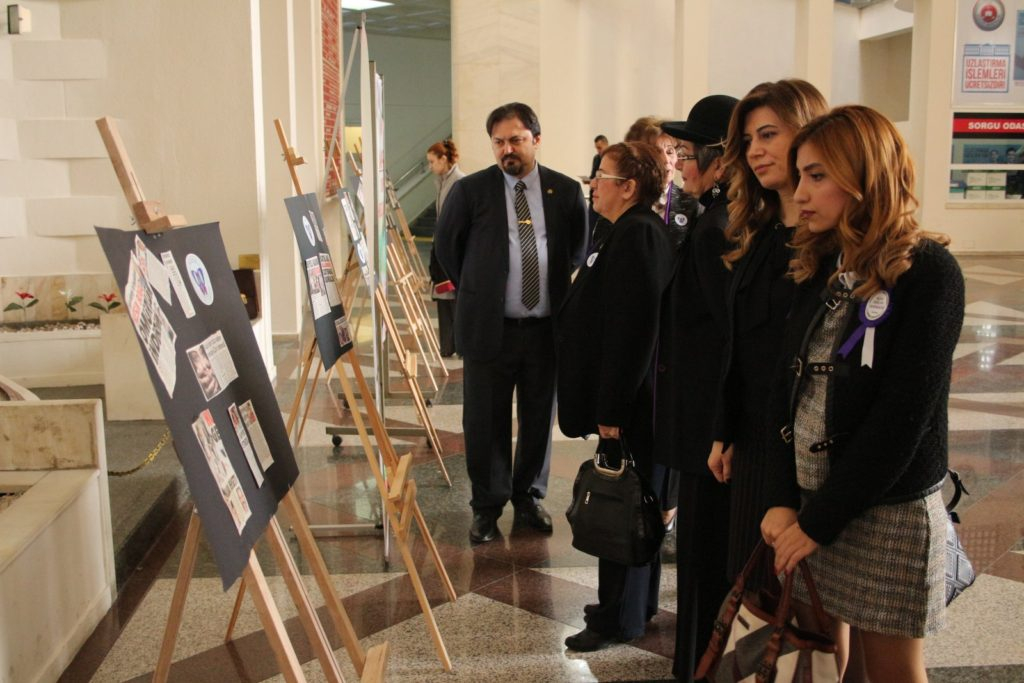 Bursa Adalet Sarayı giriş salonunda açılan ve aile içi şiddeti gösteren gazete haber kupürlerinin yer aldığı sergi, Kadının Statüsü Derneği işbirliğiyle gerçekleştirildi. Serginin açılışına Bursa Barosu Başkanı Av. Gürkan Altun, yönetim kurulu üyeleri Av. Hüsniye Altın Yeşil ve Av. Sefer Bülent Yaylalı ile Kadının Statüsü Derneği Başkanı Av. İlknur Kutucu, yönetim kurulu üyeleri Deniz Güney, Kamile Yıldırım, Serpil Ersever, Kadriye Sarıbıyık ve avukatlar katıldı.