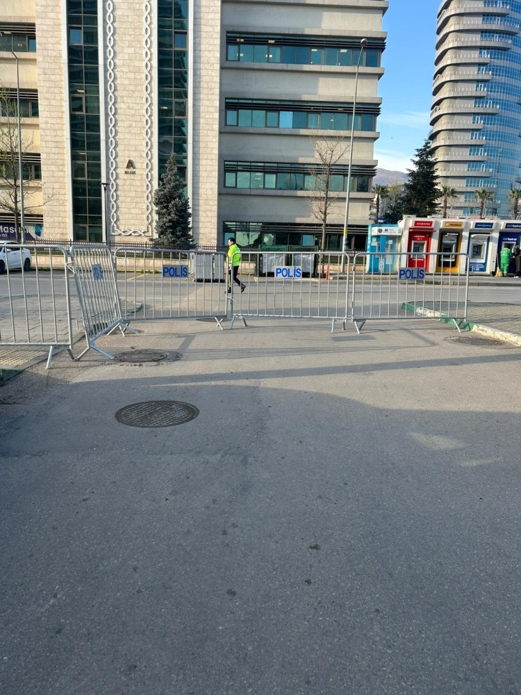 Belediye çalışanlarının araçlarının dahi otoprka alınmadığı ifade edilirken belediyenin etrafı polis bariyerleri ile çevrildi.