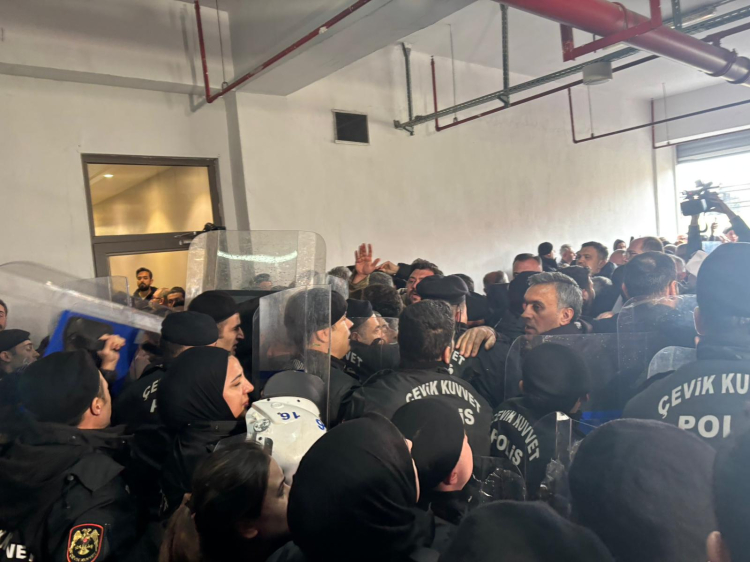31 Mart 2024 seçimlerinde en yakın rakibine 170 bin oy farkla seçilen Bursa Büyükşehir Belediye Başkanı Mustafa Bozbey'in tutuklanarak görevden uzaklaştırılması sonrası bugün Belediye Meclisi'nde başkanlık seçimi gerçekleştiriliyor. Oturuma katılmak için belediye binasına gelen CHP Bursa Milletvekilleri, belediye başkanları ve belediye meclis üyelerinin girişi polis eliyle engellendi. AKP'li Yıldırım Belediye Başkanı Oktay Yılmaz ise sabah 8.00 sularında belediye binasına giriş yaptı.