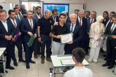 Bursa'da eğitim öğretim yılının sona ermesiyle 2 bin 3 okulda 656 bin 200 öğrenci karnelerini aldı, 25 bin 168 sınıfta eğitim veren 40 bin 732 öğretmen de yaz tatiline girdi. Yıldırım Belediyesi Hacı Mehmet Zorlu Özel Eğitim Meslek Okulu'ndaki törende, öğrenciler karnelerini Bursa Valisi Erol Ayyıldız'ın elinden aldı. Mutluluğu gözlerinden okunan öğrencilere çeşitli hediyeler veren Vali Ayyıldız, öğrenci ve öğretmenlerin başarı dolu bir dönemi geride bıraktığını söyledi. Törene Vali Ayyıldız'ın yanı sıra, Bursa Büyükşehir Belediye Başkanı Mustafa Bozbey, İl Emniyet Müdürü Dr. Sabit Akın Zaimoğlu, Yıldırım Belediye Başkanı Oktay Yılmaz, Bursa İl Milli Eğitim Müdürü Dr. Ahmet Ali Reisoğlu ve çok sayıda kurum müdürü yer aldı.