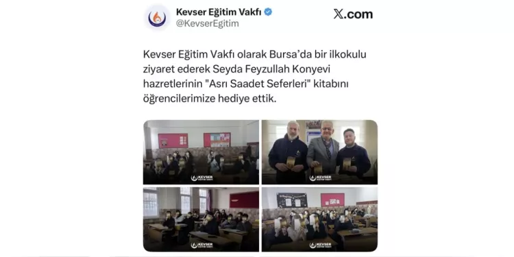 Bursa'nın Yıldırım ilçesinde Yiğitler Anadolu İmam Hatip Lisesi bünyesinde yer alan imam hatip ortaokulunda, Nakşibendi tarikatının şeyhlerinden Seyda Feyzullah Konyevi'nin "Asrı Saadet Seferleri" adlı kitabı öğrencilere 'ücretsiz' olarak dağıtıldı. İçişleri, Aile ve Sosyal Politikalar Bakanlığı ile Kızılay gibi kurumlarla protokol imzaladığı açıklanan Kevser Eğitim Vakfı, X hesabı üzerinden paylaştığı gönderide, "Kevser Eğitim Vakfı olarak Bursa'da bir ilkokulu ziyaret ederek Seyda Feyzullah Konyevi hazretlerinin 'Asrı Saadet Seferleri' kitabını öğrencilerimize hediye ettik" ifadelerini kullandı. Sosyal medya paylaşımında çocukların ellerine kitaplar verilerek fotoğraf çekildi.