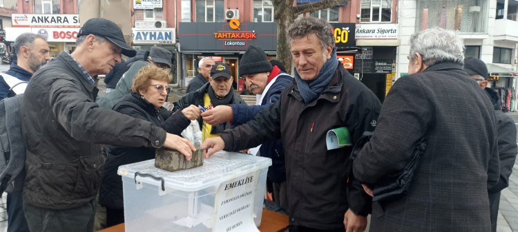 Emekliler taleplerini ise şöyle sıraladı, "20 bin TL seyyanen zam, insanca yaşanacak ücret, intibak yasası, bedelsiz sağlık hizmeti, dört maaş ikramiye, ekonomik büyümeden pay ve sendikal örgütlenme."