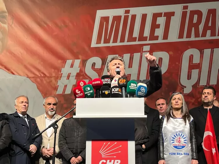 Hastane alanında konuşan CHP Bursa İl Başkanı Nihat Yeşiltaş, "Bugün burada sadece Cumhuriyet Halk Partisi yok! Özgür bir ülkeyi, kendisine hak bilenler, boyun eğmeyenler, diz çökmeyenler burada. Ekrem Başkan, üstünde adalet sarayı yazan ama rejimin zulümhanesine dönen Çağlayan'da. Bu direnişi her geçen gün büyütmeliyiz. Çoluğumuz çocuğumuz var. Onun için mücadele etmeliyiz diyin. Unutmayın, hayatını onurlu yaşayanların korkacak hiçbir şeyi yoktur. Bizler, alnında tek bir leke olmayanlarız. Korkacak hiçbir şeyimiz yok. Bırakın, hayatını kirli yaşayanlar korksun" dedi.
