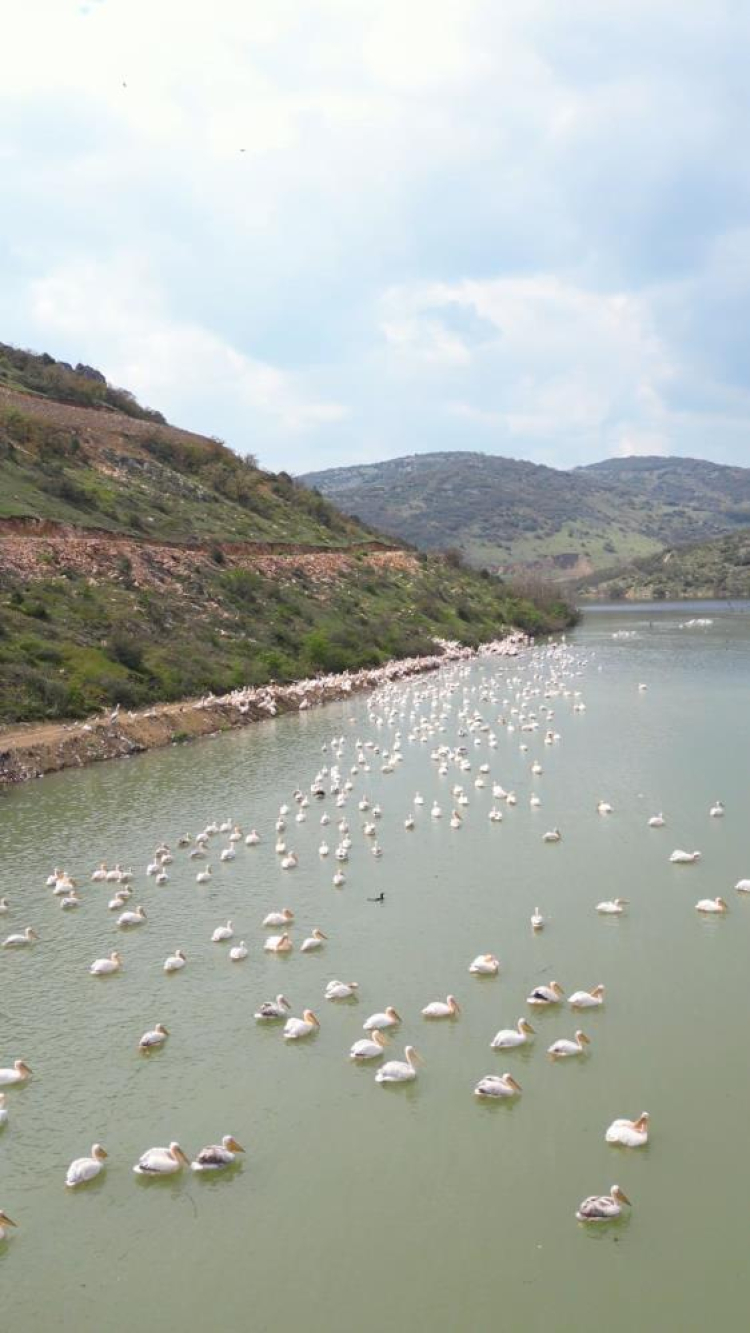 İnegöl Belediyesi Basın Halkla ilişkiler ekipleri, pelikan sürüsünü drone'la görüntüledi.