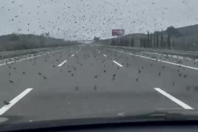Yüzlerce sığırcık soğuk hava sebebiyle Bursa-İzmir otobanı üzerine kondu. Sığırcıklara çarpmamak için neredeyse durma noktasına gelen sürücüler o anları cep telefonlarıyla görüntülediler.