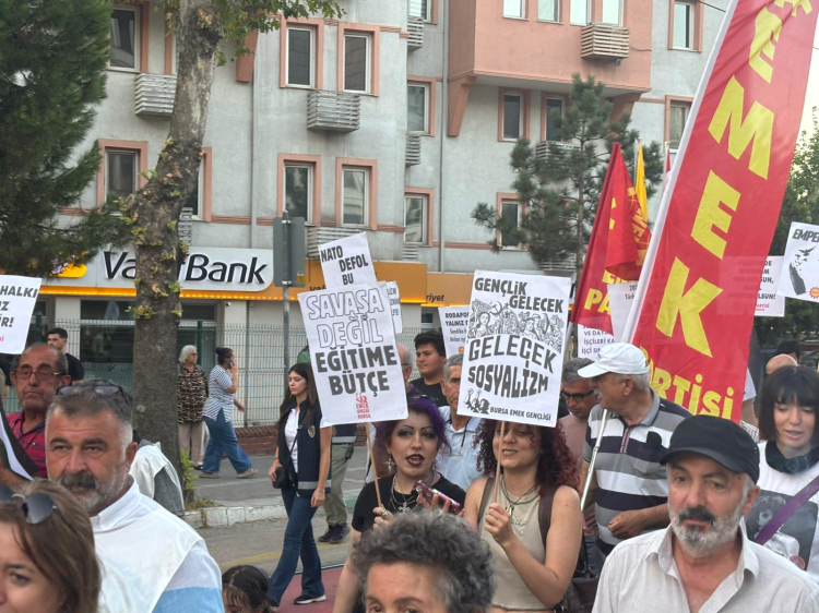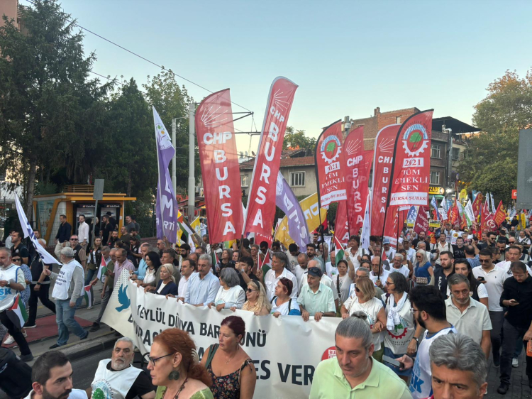 Bursa Emek ve Demokrasi Güçlerinin çağrısıyla bir araya gelen yüzlerce kişi Kent Meydanı’ndan eski Atatürk stadyumuna yürüdü. Yapılan açıklamada, "Savaş politikaları son bulsun, toplumsal barışın yolu açılsın" denildi.