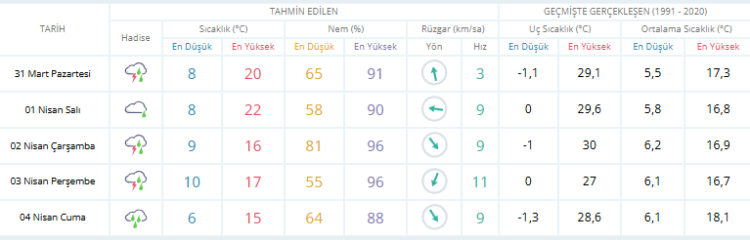 Bursa için 5 günlük hava durumu tahmini şöyle: