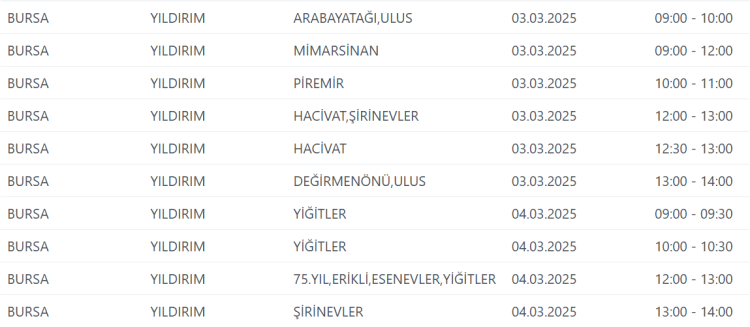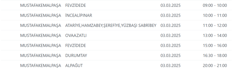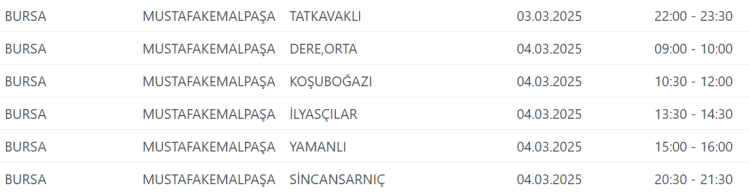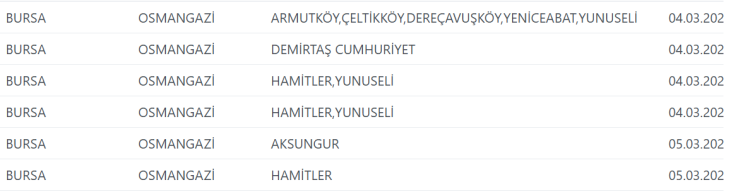 UEDAŞ‘ın yaptığı açıklamaya göre elektrik kesintisi yaşanacak ilçe ve mahalleler şöyle;