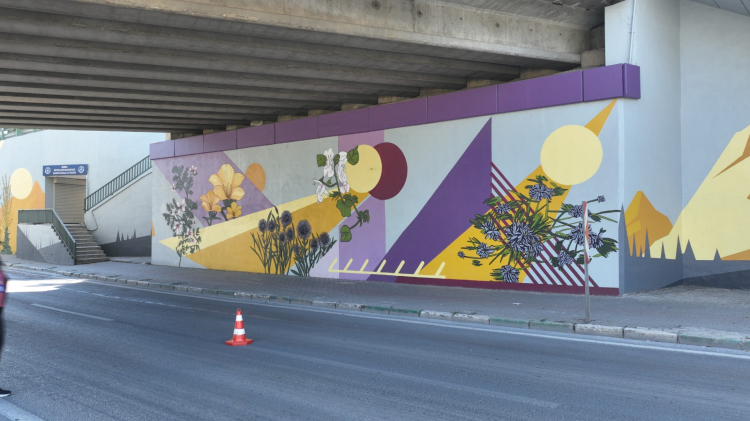Demirtaşpaşa Köprülü Kavşağı altındaki 570 metrekarelik alan üzerine orman siluetini yansıtan Büyükşehir Belediyesi ressamları, sadece Uludağ’da yetişen endemik bitkileri duvarlara büyük titizlikle resmetti. Daha önce Sırameşeler bölgesindeki duvarlara uygulanan benzer çalışmayla bütünlük sağlayan bitki motifleri, Bursa’nın simgesi Uludağ’ı şehir merkezine taşımış oldu.