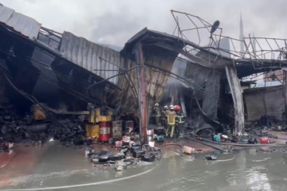 Geriye kalan küle dönmüş dükkanlar dron ile görüntülendi.
