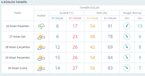 Bölgede hava sıcaklığının mevsim normalleri civarında olacağı öngörülüyor.