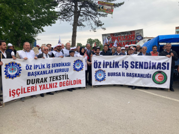 Başkanlar kurulunu Bursa’da yapan Öz İplik İş Sendikası, 82 gündür sendikalaştıkları için işten atılan Durak Tekstil işçilerini ziyaret etti.