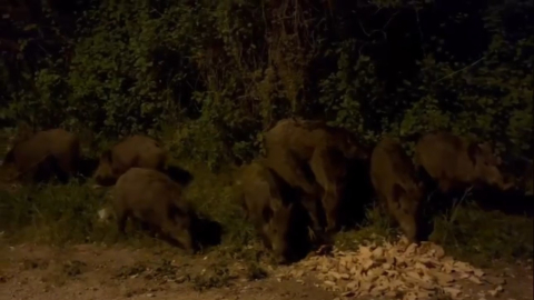 Domuz sürüsü ise çöp konteynerlerinde yemek aradıktan sonra geldikleri ormanlık alana giderek gözden kayboldu.