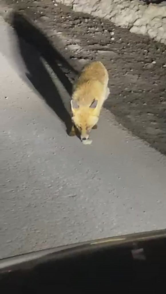 Öte yandan, gece saatlerinde otomobiliyle Uludağ’dan inen başka bir vatandaş ise yolda gördüğü aç tilkiyi elleriyle besleyerek o anları kayda aldı.
